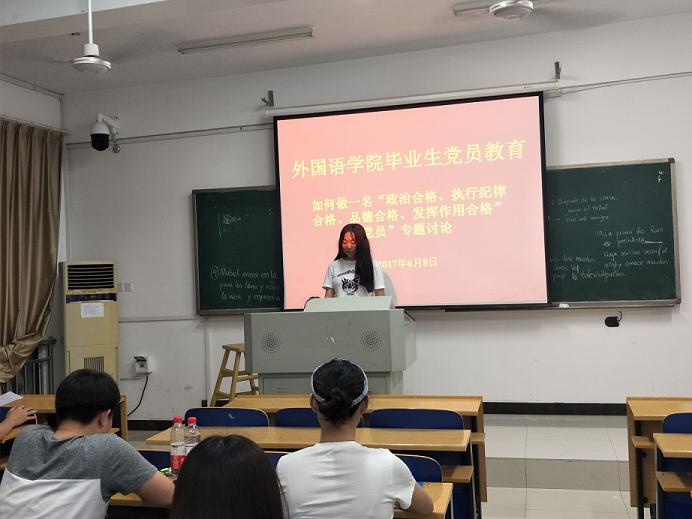 6月8日,伟德官网全体毕业生党员于外语网络楼604教室开展了主题为“如何做一名‘政治合格、执行纪律合格、品德合格、发挥作用合格’党员”的专题讨论,讨论会由王海洋老师主持。