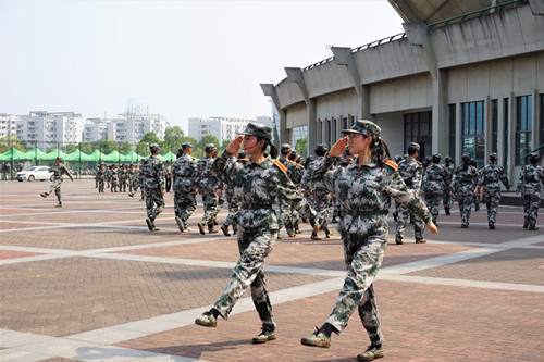 宽大的迷彩服,简单的绿军鞋,褪去所有的装饰,真正的素面朝天,亲切的迷彩绿,更让人有种回归自然的感觉。军训似乎是一场灵魂与自然的对话,没有喧闹没有萎靡,拥有的只是生命的活力与蓬勃的朝气。
