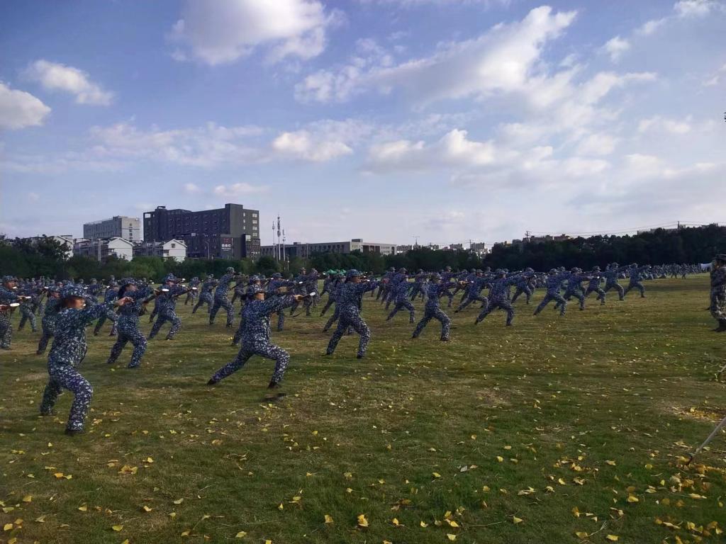10月25日,距离军训活动成果汇报及表彰大会只剩两天不到的时间。 “行百里者半九十”,教官和同学们都不敢有丝毫松懈,不敢放低标准,继续紧张地投入了第三天的入场预演。 分列式方阵中,庄严的音乐环绕着训练场,同学们仔细聆听每一个音乐节点,精神抖擞、步伐坚定、昂首挺胸,挥臂迈向前,尽显青春风采。烈日下的迷彩服,稳重了青涩漂浮的心;嘹亮的口号,激荡起青春的风华正茂;一遍遍的踏步,磨练着青春的年少轻狂。 刺...