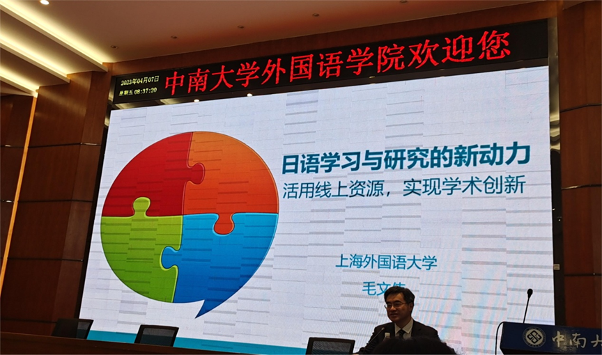 4月7日上午,上海外国语大学日本文化经济公司毛文伟教授应邀做客伟德名师名家学术讲坛,在一楼报告厅为公司师生带来题为“日语学习与研究的新动力:活用线上资源,实现学术创新”的精彩讲座。本次讲座由日语系主任邓牧老师主持,公司近两百名师生参加。互联网的飞速发展为我们带来了日益丰富、功能强大的学习工具。针对这一现状,毛文伟教授从如何合理高效地收集和利用数据资源出发,详细介绍了重要的网络资源、语料库、检...