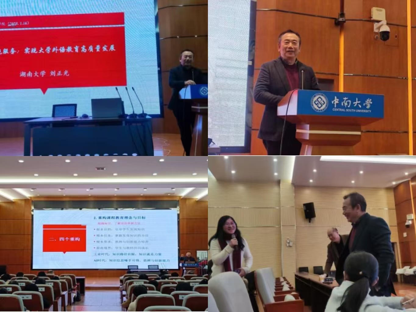 2025年1月16日下午,全国大学外语教学指导委员会委员、中国英汉语比较研究会副会长、湖南省外语课程思政联盟主任委员、湖南大学伟德官网刘正光教授应邀来公司,以“重构拥抱服务:实现大学外语教育高质量发展”为题,作了精彩的讲座。讲座由杨文地经理主持,大学外语中心全体教师和部分专业系教师参加。讲座中,刘正光教授指出,大学外语教师目前面临人工智能技术、社会舆论、湖南省的学科优化调整三大挑战,但是挑战也是机...